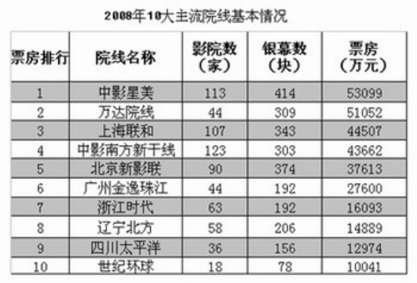 目前,加入主流院线的影院已成为我国电影市场放映的主力。去年,全国院线34条,主流市场银幕总数达4097块,实现票房收入43亿元,前10大院线票房收入已占当年全国票房收入的七成以上。
