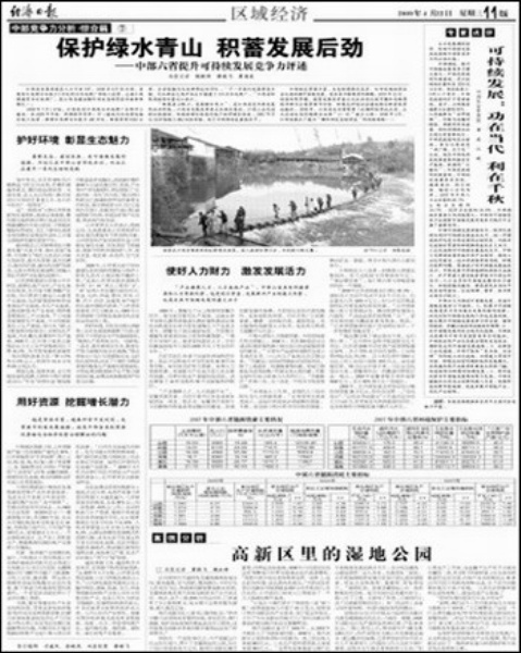 ⑦《保护绿水青山 积蓄发展后劲———中部六省提升可持续发展竞争力评述》(2009年4月22日)