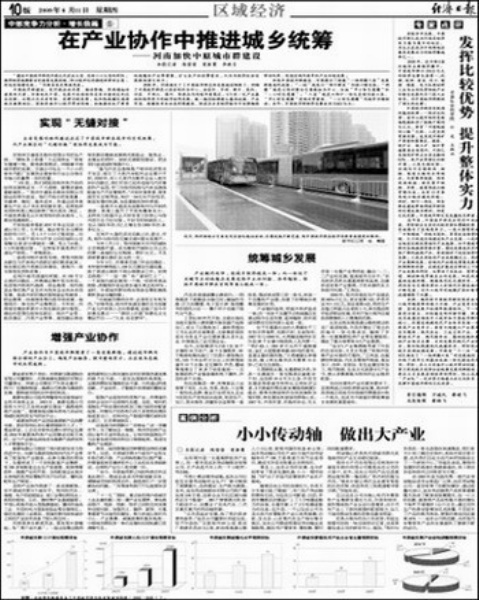 ⑤《在产业协作中推进城乡统筹———河南加快中原城市群建设》(2009年6月11日)