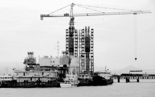 正在加紧建设中的福建平潭海峡大桥(7月26日摄)。福建平潭海峡大桥自2008年2月正式动工,预计2009年底将完成所有桩基、承台施工,大桥力争在2011年元旦基本建成。平潭海峡大桥全长4976米,其中桥梁总长3510米,双向4车道,设计行车速度80公里/小时。 新华社记者 张国俊摄