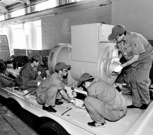 7月15日,我国最大的燃机制造基地东安公司,技术人员、工人们正在紧张地进行发动机和发电机的安装工作。
