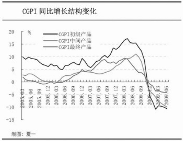 2009年二季度5000户工业企业产品销售价格景气指数从一季度的—15.6%收窄至—8.9%,出现了较大幅度反弹。全球商品市场整体呈现触底回升之势,未来“输入型”通胀压力增加。同时,国内需求继续回升,流动性持续宽裕,通胀预期有所显现。总体来看,CPI将会在下半年走稳,存在反弹可能。