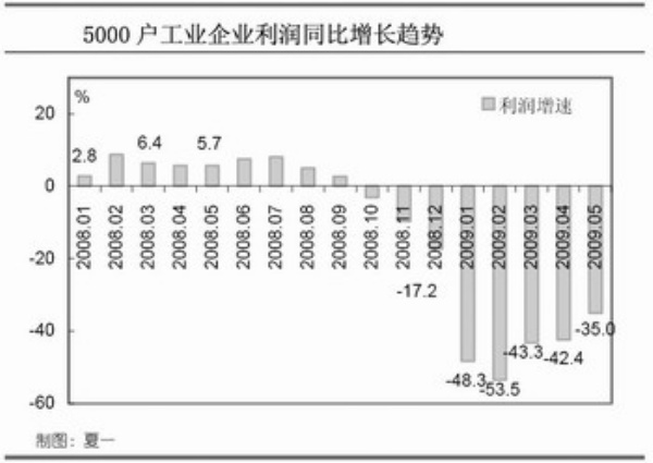 这份报告指出,中国人民银行监测的5000户工业企业调查显示,今年以来,工业企业利润同比下降幅度逐步收窄。1—5月累计,企业利润同比增长—35%,增长幅度虽比去年同期低40.7个百分点,但分别较今年前2、3和4月累计提高18.5个、8.3个和7.4个百分点。