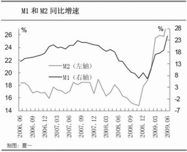 6月末,狭义货币M1、广义货币M2同比分别增长24.8%和28.5%,比上年末分别上升15.7个和10.6个百分点。消除季节因素后,6月份M1和M2环比折年率分别为76.5%和43.5%,分别比5月末上升52.1个和19.1个百分点。