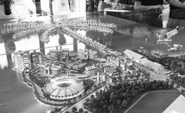 这是马来西亚雪兰莪州在雪邦地区展示的“海上棕榈树”别墅建筑群模型。马来西亚雪兰莪州政府目前正在雪兰莪州吉隆坡国际机场附近的雪邦地区打造一个“黄金海岸”旅游度假胜地。这个度假胜地沿马六甲海峡海岸而建,长22公里,主要特色是一个由399个套房组成的棕榈树形状的海上别墅建筑群。目前,该项目部分工程已完工,计划于明年4月逐步开放。 新华社发
