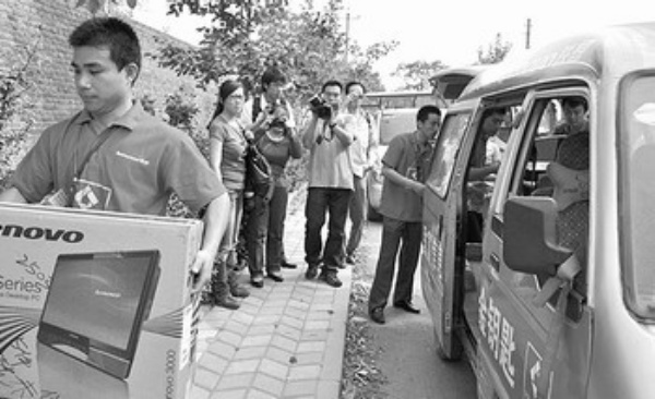 在河北省郭庄镇,联想便民窗口为农村用户送电脑上门。 廉 想摄