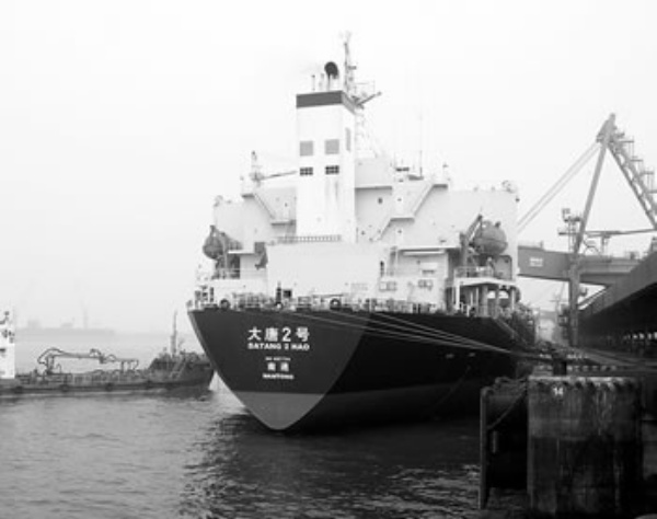 8月1日,一艘轮船在拖轮的帮助下停泊秦皇岛港煤炭码头。 2009年以来,秦皇岛港在度过了1、2月份生产寒冬之后,从3月份开始,生产形势逐月呈现回升。7月份,秦皇岛港货物吞吐量达到2261万吨,创造了2008年9月份以来最高的生产纪录。 新华社记者 杨世尧摄