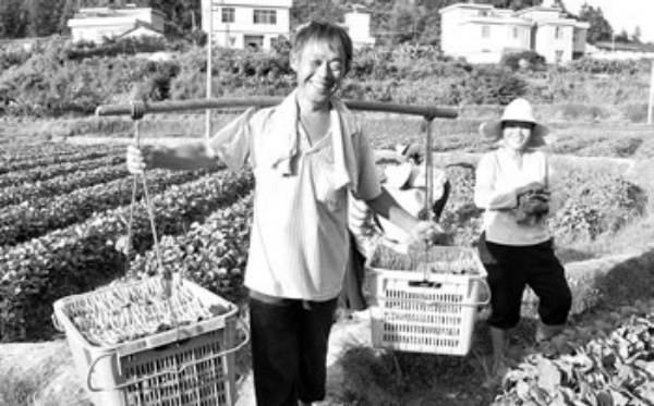 江西安远县欣山镇下庄村农民采摘无公害蔬菜
