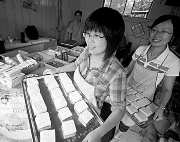 8月2日,在江苏省泰州市海陵区东进小区,大学生陈媛(左)、吴可嘉在七彩果蔬豆腐坊搬运豆制品。吴可嘉和陈媛大学毕业后走上自主创业之路,合作开办了一家彩色豆腐坊,经营果蔬豆腐、豆浆等豆制品,顾客络绎不绝,生意蒸蒸日上。