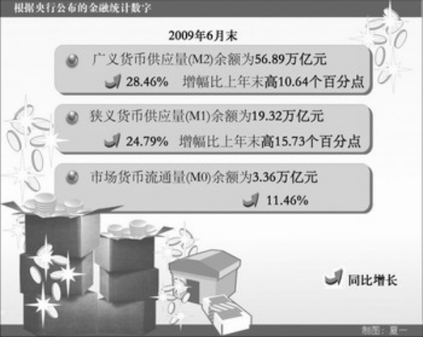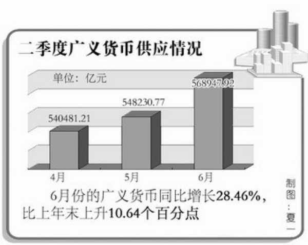 一般来讲,货币供应量作为一个经济体中的货币总量,是货币政策重要的操作目标,其增幅的多少是判断货币政策执行情况的重要标志。狭义的货币供应量M1,是指流通中的现金加银行的活期存款。这里的活期存款仅指企业的活期存款;而广义货币供应量M2,则是指M1再加上居民储蓄存款和企业定期存款。以此来分析,今年上半年我国的货币总量是十分充足的。