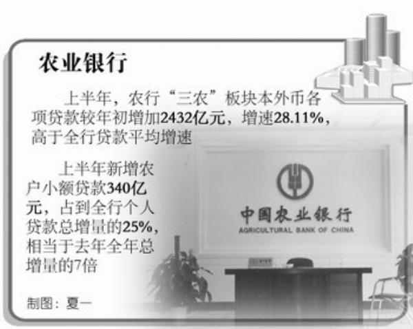 特别值得一提的是,农行上半年新增农户小额贷款340亿元,占到全行个人贷款总增量的25%,相当于去年全年总增量的7倍,创农行商业化改革后的历史之最。