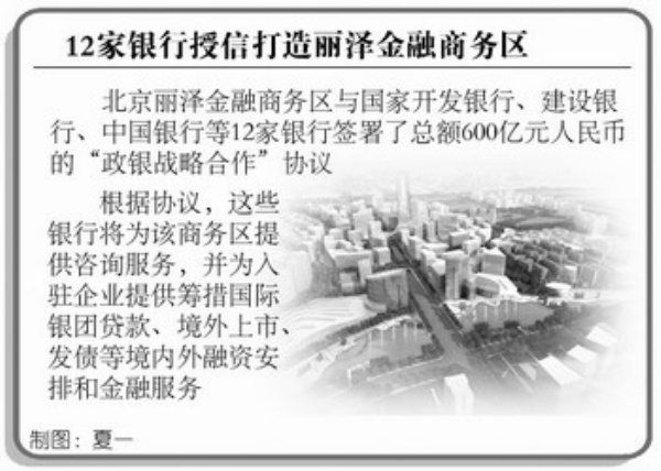 本报讯 北京丽泽金融商务区是北京市重点建设的新兴金融产业功能区。目前丽泽金融商务区的开发建设工作正积极向前推进,规划完成后的丽泽金融商务区将聚集一大批金融业总部、新兴金融机构、金融要素市场,成为首都金融发展的新空间。 (刘 畅)
