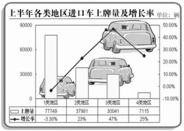 今年上半年进口车市场在车型、排量、品牌、地区等方面结构调整变化明显,主要表现有: