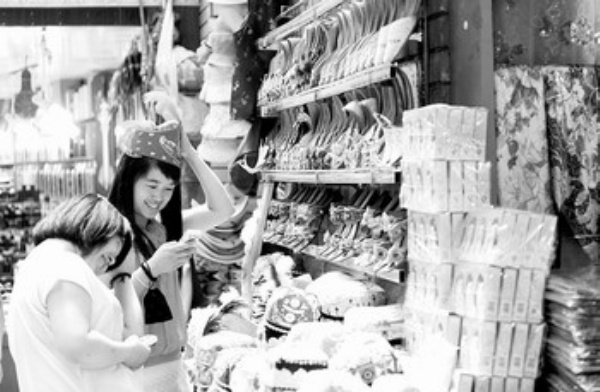 8月5日,两名游客在乌鲁木齐国际大巴扎挑选花帽。在乌鲁木齐黑甲山、二道桥、赛马场等地区,居民生活平稳,国际大巴扎等标志性旅游景点游客增多。 新华社记者 沙达提摄