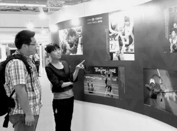 8月5日,在北京新光天地,精彩的奥运图片展吸引了市民驻足观看。为纪念北京奥运会成功举办一周年,“奥运一周年精彩图片巡回展”首展当日在京举行。 本报记者 乔金亮摄