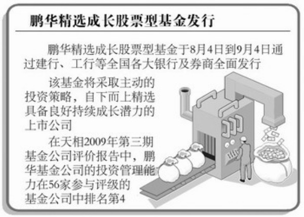 本报讯 鹏华精选成长股票型基金于8月4日到9月4日通过建行、工行等全国各大银行及券商全面发行。该基金将采取主动的投资策略,自下而上精选具备良好持续成长潜力的上市公司。在天相2009年第三期基金公司评价报告中,鹏华基金公司的投资管理能力在56家参与评级的基金公司中排名第四。 (苏 萍)
