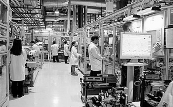 上图:博世汽车部件(长沙)有限公司先进的电机生产线