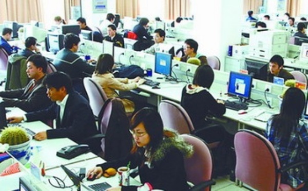 下图:2009年拍摄的上海宝钢集团控股子公司宝信软件的服务外包中心。