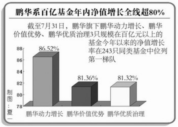 本报讯 截至7月31日,鹏华基金公司旗下鹏华动力增长、鹏华价值优势、鹏华优质治理3只规模在百亿元以上的基金今年以来的净值增长率分别达到86.52%、81.36%和81.32%,在243只同类基金中位列第一梯队。 (张艳利)