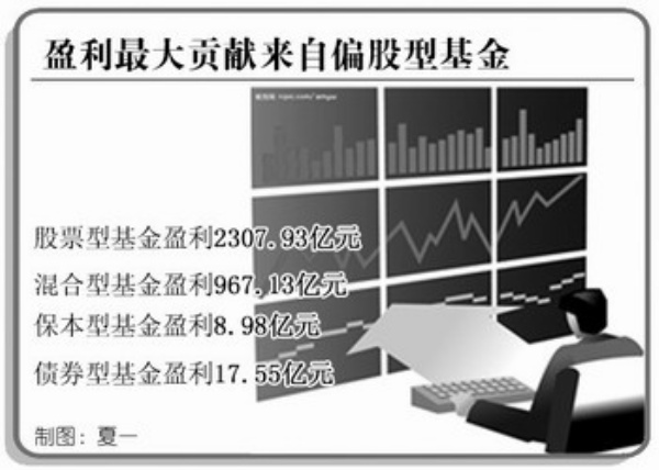 数据显示,基金累计盈利增长的最大贡献主要来自偏股型基金。其中,仅股票型和混合型这两类基金二季度累计盈利就有3275.06亿元,其中股票型基金盈利2307.93亿元,混合型基金盈利967.13亿元,两项合计占全部基金盈利比例的94.64%。