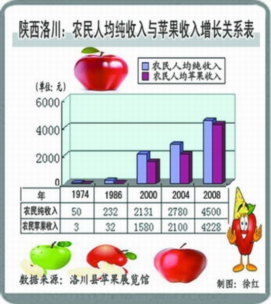 “发展苹果产业的最终目的就是为了富民强县,让老区人民真正得到实惠。”洛川县县长谢京帅在接受记者采访时说,“60年前,为了改变家乡贫穷落后的面貌,我们的先辈从千里之外的河南把苹果引进洛川,他们的精神鼓舞着每一代洛川人在发展的道路上不断艰苦奋斗、开拓进取。”