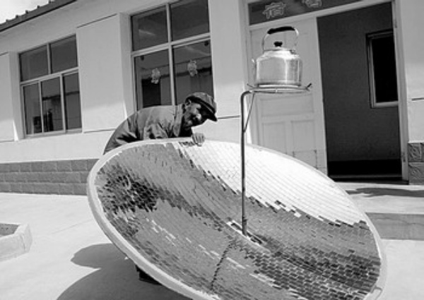 图②:在北山区域中心敬老院,人们使用太阳能烧水。