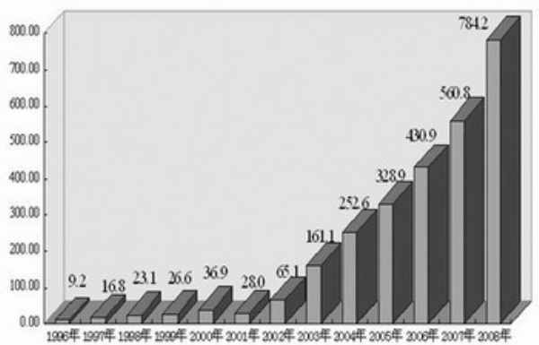 下图:包头稀土高新区工业总产值(单位:亿元)