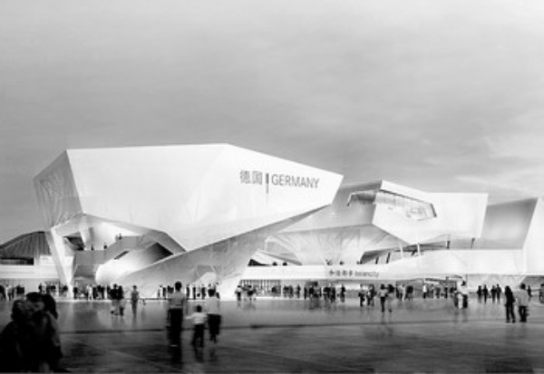 德国馆的设计方案是在欧洲范围内征集的,最终胜出者来自德国。馆名“和谐都市”取自于英文“均衡”和“城市”,4大建筑主体组成的展馆单个看起来都不平稳,合在一起就达到了整体稳固的平衡状态。这一设计旨在从建筑学角度诠释“和谐都市”的主题。