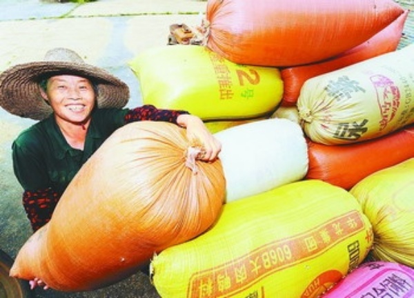 8月15日,福建省建阳市溪源村种粮大户许春玉在粮食收购点卖粮。地处闽北的全国商品粮基地县———福建省建阳市今年早稻喜获丰收,当地粮农正在忙着出售夏粮。 新华社记者 张国俊摄