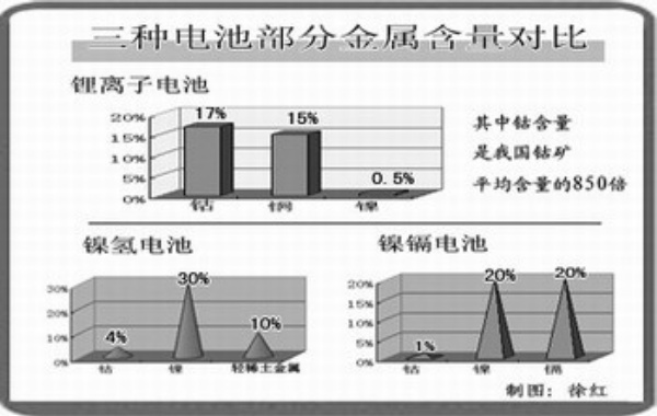 “废旧电池是一座宝库,其中含有大量的稀有金属,提炼出的稀有金属甚至完全可以替代以原矿为资源的同类产品。”深圳格林美公司的技术标准与产权部经理韩红涛如此表示。