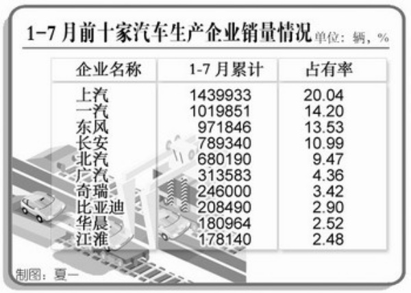 据中国汽车工业协会统计,7月汽车生产110.96万辆,同比增长52.15%;销售108.56万辆,同比增长63.57%。受经济回暖、政策效应和市场刚性需求的拉动,7月汽车产销一改往年淡季的走势,当月产销连续第5个月保持在百万辆以上的水平。