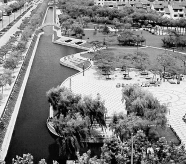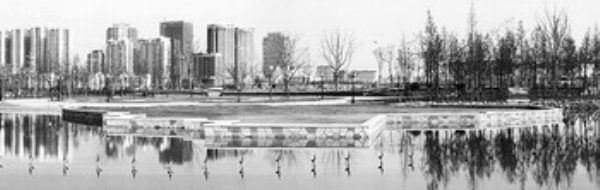 图3 胶南市中心湿地。因保护了这条河及入海口湿地,胶南这座海滨小城的市中心便有了水的灵气。