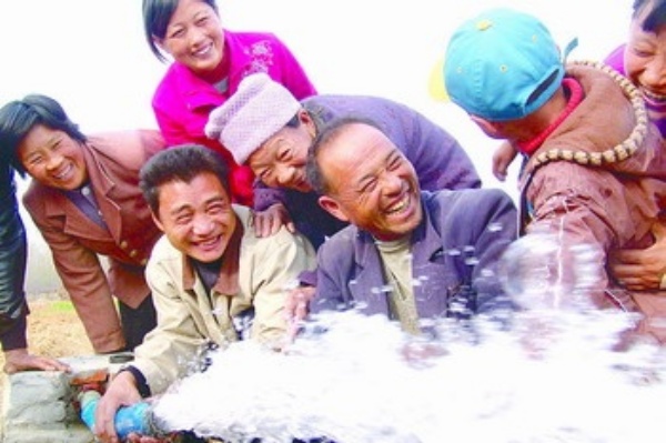 中图:山东省“引水上岭”项目让农民乐开怀。 杜昱葆摄(中经网供图)