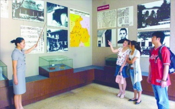 图3:游客在萍乡安源路矿工人运动纪念馆参观。萍乡市红色旅游资源丰富,近年来,该市以红色旅游为依托,使红色旅游与生态旅游相对接,旅游产业发展迅猛,成为新的经济增长点。