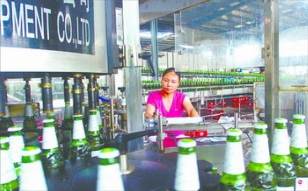 图4:萍乡市萍青啤酒有限责任公司繁忙的啤酒生产线。萍青啤酒10万吨酿造基地是目前赣西最大的现代化啤酒酿造基地,为当地百姓创造了近千个就业岗位,对调优产业结构、实现产品的梯度转移起到极大的推动作用。