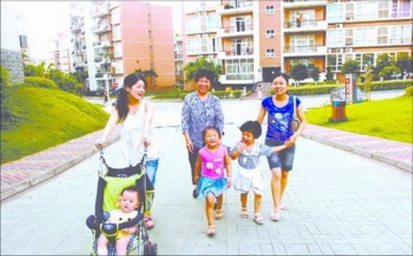 图6:居民们在干净整洁、草木葱茏的小区里散步。萍乡市全力创建国家园林城市,加强城市园林和住宅小区绿化建设,提高绿化品质和绿化率。至今年6月,萍乡人均公园绿地9.03平方米,绿化率达35.6%,绿化覆盖率达40.3%。