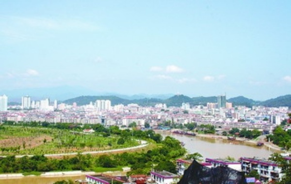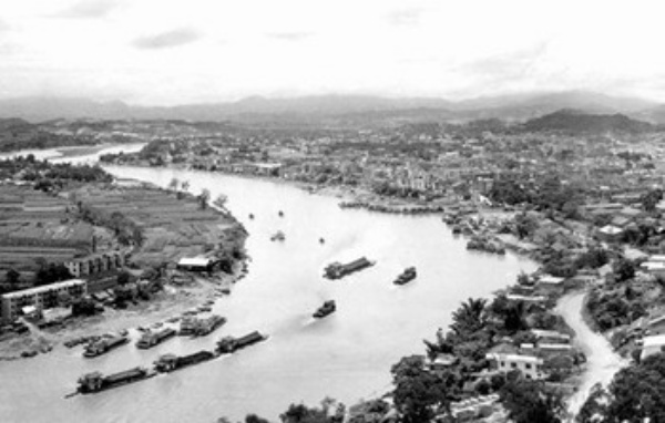 ▲ 上世纪70年代的百色城老照片。 (百色市委宣传部供图) 7月28日拍摄的百色城。 覃蔚峰摄
