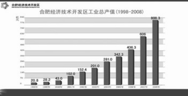 国内家电企业海尔在合肥的工业园不断扩张,产值由建厂初期的3亿元猛增至2008年的150亿元。