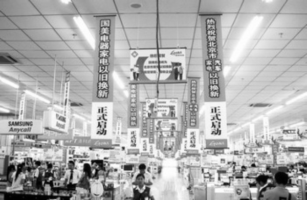 在家电卖场,像曹女士、刘大爷这样专门来了解情况的消费者络绎不绝。8月22日下午,记者在苏宁电器刘家窑店内看到,工作人员正在将大批咨询“以旧换新”的消费者引导到专门的咨询柜台。“这两周客流量明显加大。起先我们安排了5名‘以旧换新’的导购专员,专门解答消费者的疑问以及帮助消费者完成换新流程,但经过一段时间的工作,我们又临时增加了3名人员来满足消费者的需求。”苏宁电器刘家窑店相关负责人表示。