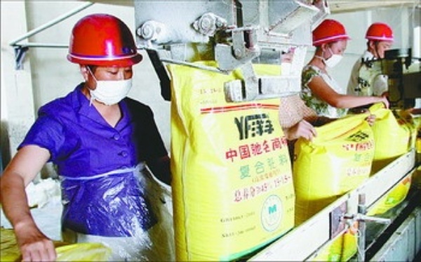 图2:荆门市洋丰集团复合肥生产线。洋丰集团积极发展循环经济,对废水、废气、废料进行综合利用,变废为宝,实现了经济效益与环保效益的“双赢”。