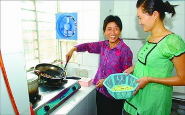 图3:荆门市沙洋县高阳镇垢冢村,村民曾唯唯(右)在家中用沼气做饭。目前荆门市有沼气池4.5万个,以沼气为纽带的“畜禽—沼气—稻菜果”模式比传统的农业生产模式产值高出1倍。
