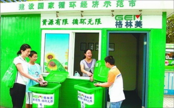 图4:荆门格林美公司废旧电池回收点,市民们正踊跃上交废旧电池。格林美公司利用多项专利技术,从废旧电池中提取镍粉、钴粉,不仅解决了环境污染问题,还减少了对矿产资源的依赖。