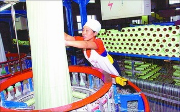 图6:荆门钟祥市鄂中化工有限公司,工人在生产线上忙碌。该公司通过建立生产用水循环系统,利用硫酸余热发电,利用硫酸尾渣选铁,年可节水50万吨,节约标煤1.5万吨。