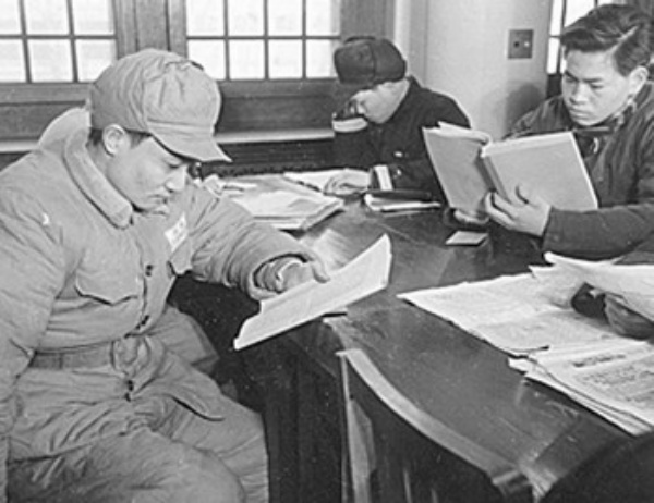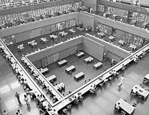 上世纪50年代,读者在文津街北京图书馆大阅览室里阅读。