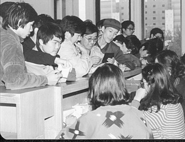 1987年10月,位于北京白石桥的一期新馆开放时,读者踊跃办理借阅证。
