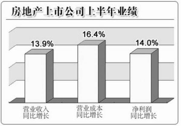 从上半年业绩看,上市房企营业收入同比增长13.9%,营业成本同比增长为16.4%,净利润同比增长14%。国泰君安分析师孙建平认为,从上半年情况来看,上市房企的收入、利润增速已经接近2006年的水平。