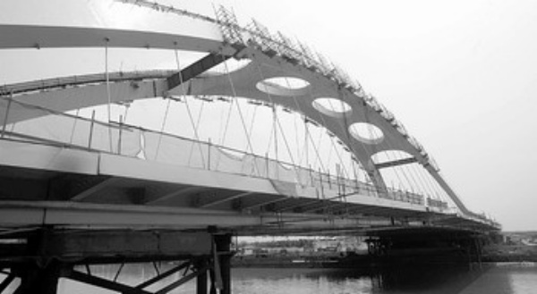 图片说明:位于上海浦东川杨河上的川杨河大桥是世博会的重要配套工程,经过上海建工基础公司建设者4个多月的连续奋战,目前主桥面即将合龙。大桥建成后,贵宾车辆可从两个机场通过中环线进入贵宾通道,并通过川杨河大桥直接进入世博园区。