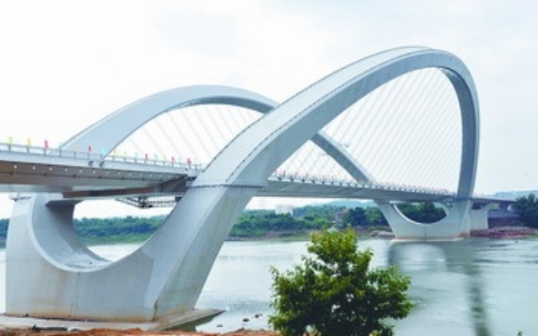 9月21日,大跨径曲线梁非对称外倾拱桥———南宁大桥正式建成通车。南宁大桥横跨邕江两岸,主桥300.50米,引桥长434.00米,引道长580.27米,桥宽、路基宽度35米。南宁大桥创造了中国桥梁史上的诸多第一,成为南宁的标志性建筑。 新华社记者 刘广铭摄