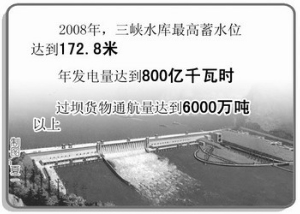 三峡工程2003年6月1日蓄水以来,在建设过程就开始发挥各项实质效益,2008年水库最高蓄水位已经达172.8米,年发电量达800亿千瓦时,过坝货物通航量达到6000万吨以上,如遇较大洪水已完全具备拦洪的条件。
