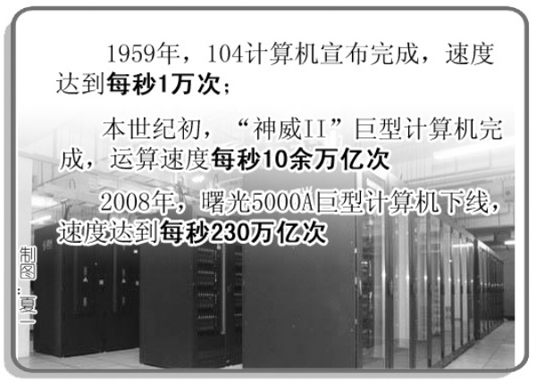 本世纪初,“神威Ⅱ”巨型机完成,运算速度每秒10余万亿次。此后,我国在巨型计算机的应用上取得重大成果。在此基础上,我们完全有能力采用国产CPU芯片,在短期内完成国家千万亿次巨型机的研制。